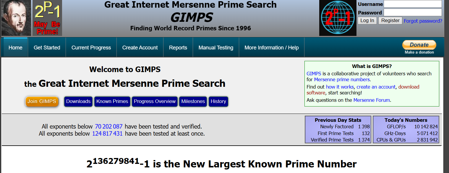 GIMPS, fondé en 1996 par George Woltman, est un projet collaboratif qui rassemble des milliers de bénévoles à la recherche de nombres premiers de Mersenne. Ces nombres premiers, nommés d’après le moine français Marin Mersenne, sont de la forme 2P-1, où P est un nombre premier. GIMPS a permis de découvrir les 18 derniers nombres premiers de Mersenne, dont le nouveau record. Le projet offre une récompense de 3 000 $ à toute personne découvrant un nouveau nombre premier.